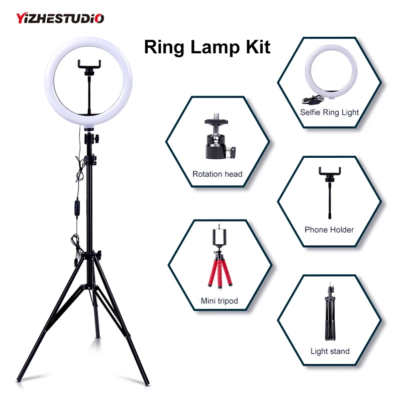 Кольцевая лампа Yizhestudio, со штативом, с регулируемой яркостью, кольцевая лампа для селфи, с подставкой, цветная кольцевая труба, светиль�…