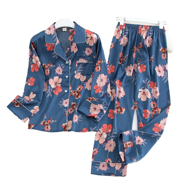 Пижамный комплект с длинным рукавом и брюками, модный осенний пижамный комплект, одежда для сна в горошек, шелковая атласная тонкая ве�…