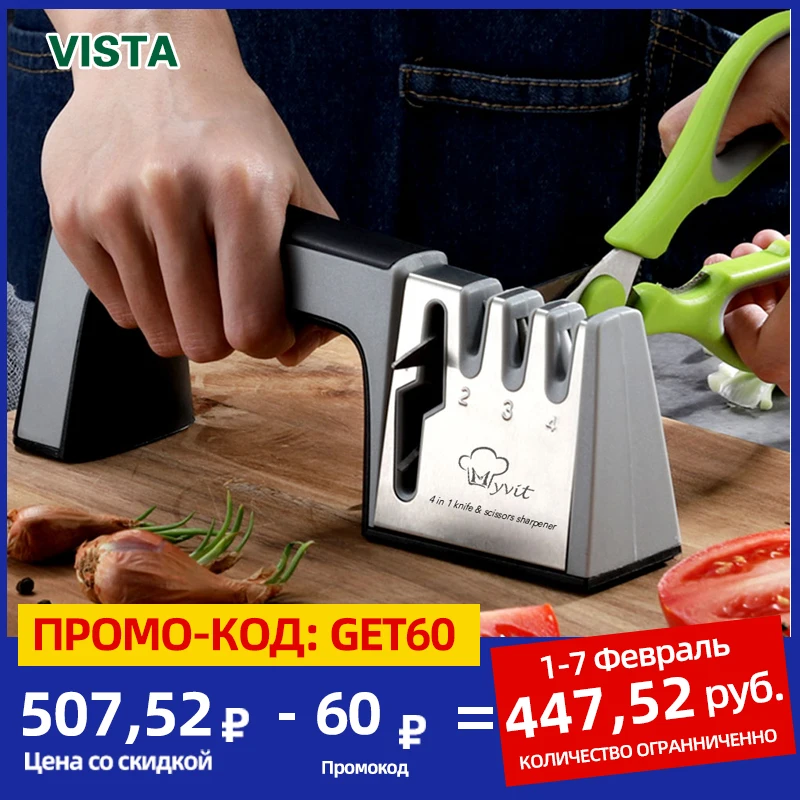 Точилка для ножей 4 в 1 с алмазным покрытием и тонким стержнем, ножницы и ножницы для заточки каменной системы, лезвия из нержавеющей ст�…