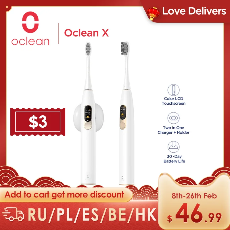 Электрическая зубная щетка Oclean X Sonic с цветным светодиодный сенсорным экраном 4 режима чистки приложение управление IPX7 Водонепроницае�…