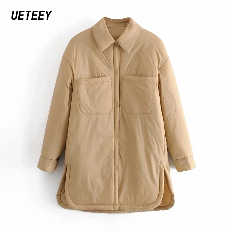 Куртка женская оверсайз с длинным рукавом, тонкая однотонная свободная парка цвета хаки, trf Za, модная верхняя одежда в винтажном стиле �…