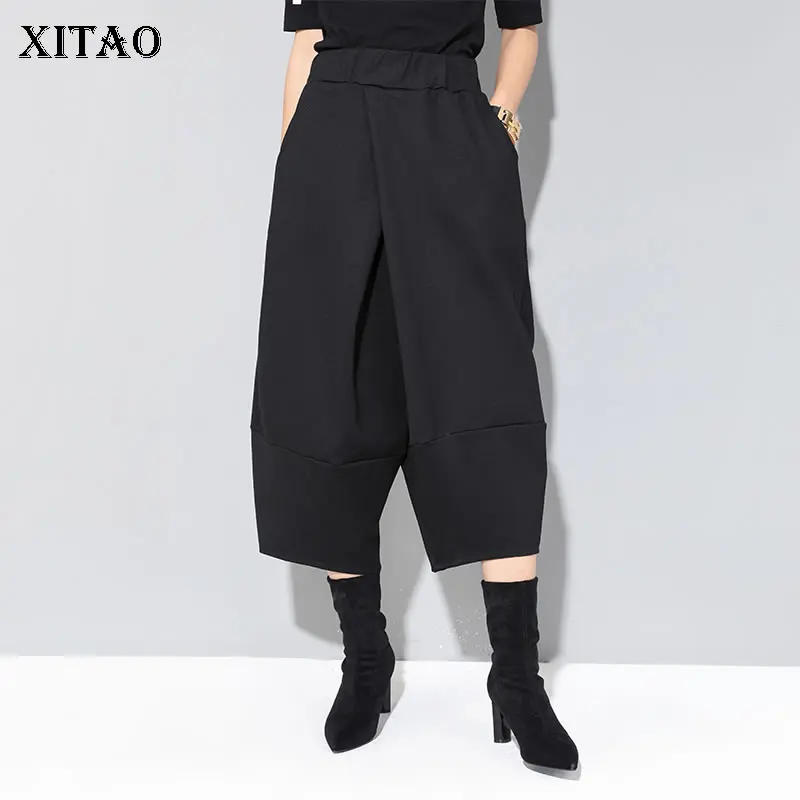 [ XITAO ] свободные женские европейские модные прямые брюки весна лето 2019, Женские однотонные штаны до середины икры с эластичной резинко�…