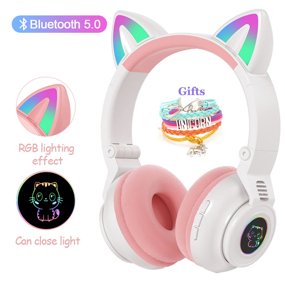 Милый Кот складные наушники Bluetooth 5,0 с микрофоном, стерео музыка ПК для мобильного телефона, наушники для геймеров для ребенка девочки �…