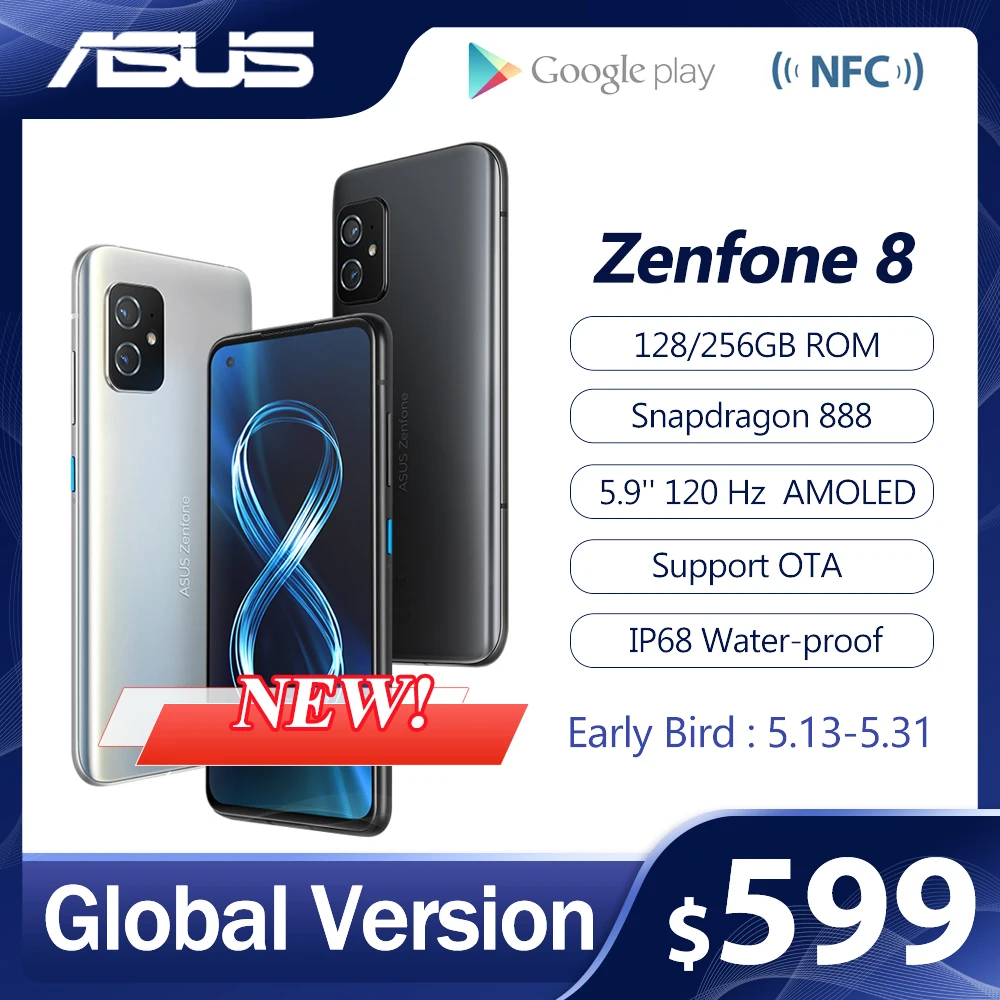 ASUS Zenfone 8 глобальная версия Snapdragon 888 8/16GB Оперативная память 128/256 ГБ Встроенная память 5,9 ''IP68 воды доказательство Android OTA 5G для мобильного �…