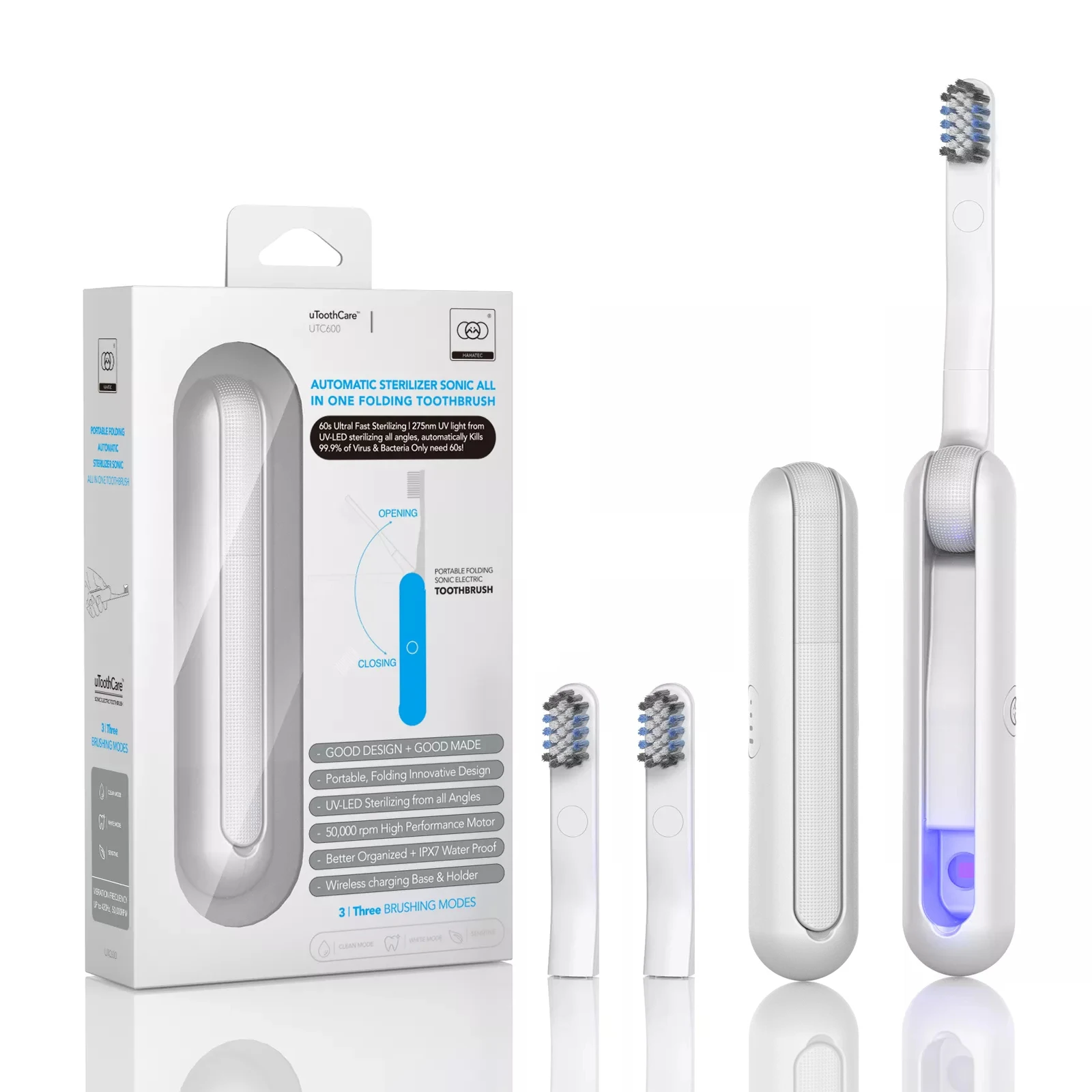 Ультразвуковая электрическая зубная щетка UTC600, портативная беспроводная зарядка, уф стерилизация, дезинфекция, Электрическая Складн�…