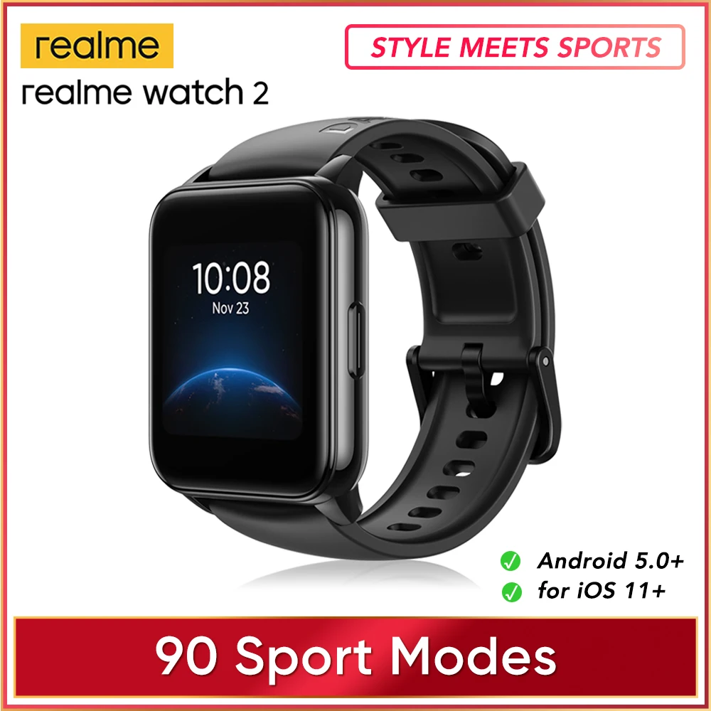 Смарт-часы realme Watch 2, спортивный трекер, 90 режимов работы, Время работы батареи 12 дней, уровень кислорода в крови, пульсометр, влагозащит�…