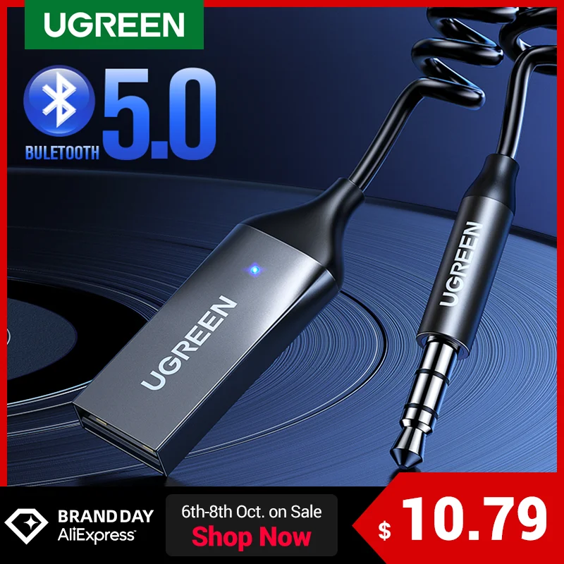 UGREEN Bluetooth приемник 5,0 адаптер свободные руки автомобильные наборы AUX аудио 3,5 мм разъем Музыкальный беспроводной приемник для автомоби�…