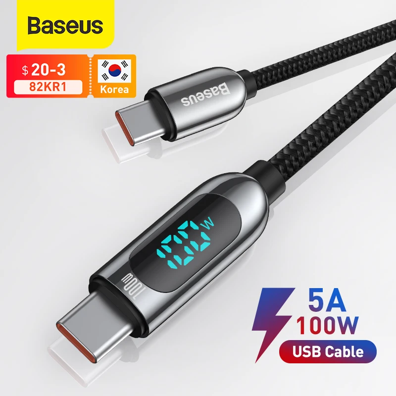 Кабель Baseus PD 100 Вт USB C для MacBook 2021 2020, кабель для быстрой зарядки типа C для Xiaomi Samsung, провод для передачи данных, зарядный кабель для телеф�…