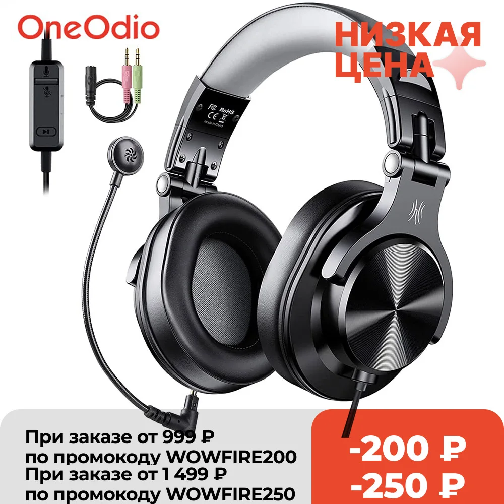 Oneodio проводные игровые наушники 3,5 мм стерео игровые наушники накладные с отстегивающимся микрофоном для пк компьютера PS4 смартфона, г�…