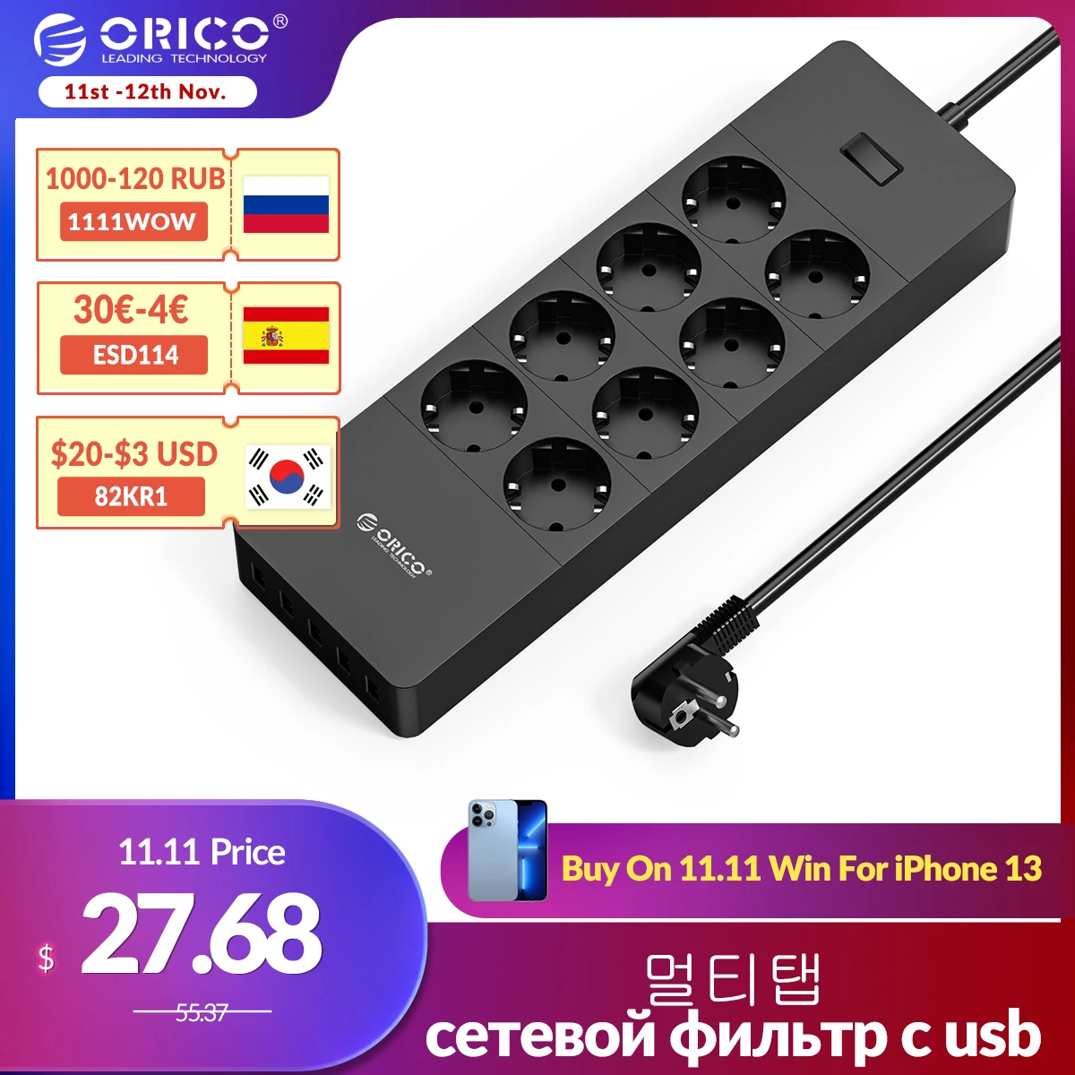 Электрическая лента ORICO с удлинительным кабелем, электрические розетки с usb-портами для домашнего офиса, защита от перенапряжения, умн�…