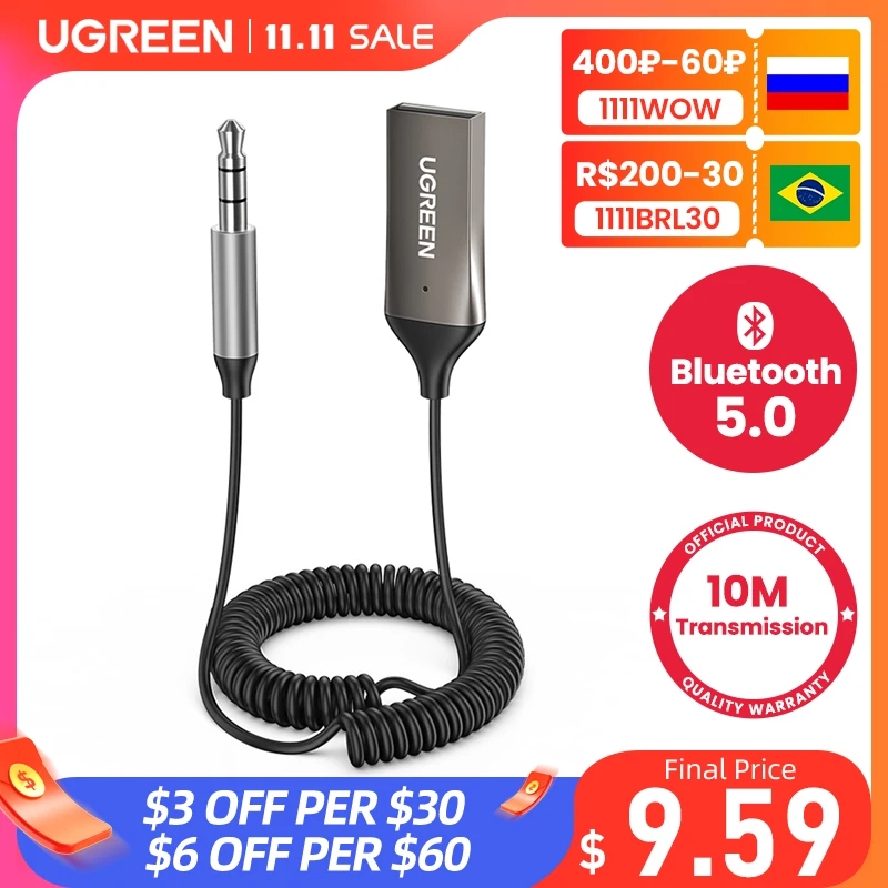 UGREEN Bluetooth приемник 5,0 адаптер свободные руки автомобильные наборы AUX аудио 3,5 мм разъем Музыкальный беспроводной приемник для автомоби�…