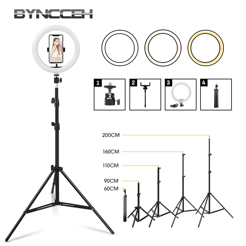 Кольцевая лампа Диммируемый кольцевой светильник, светодиодная селфи лампа Круглые лампы для селфи USB с держателем для телефона, подс�…