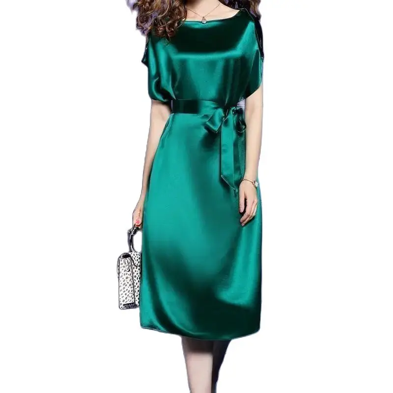 Женское гладкое атласное платье размера плюс 5XL, летнее тонкое элегантное вечернее платье с коротким рукавом, винтажное Бандажное шел�…