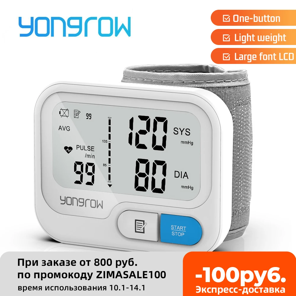 Yongrow Автоматический цифровой монитор артериального давления на запястье Сфигмоманометр тонометр Tensiometer пульсометр BP монитор Артериа�…
