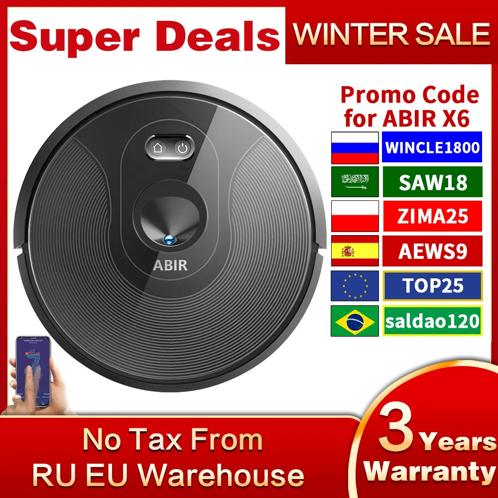 Робот-пылесос ABIR X6 , всасывание 6000 Па, программная виртуальная стена, выборочная очистка зоны APP, умная влажная уборка, Дезинфекция, Неп�…